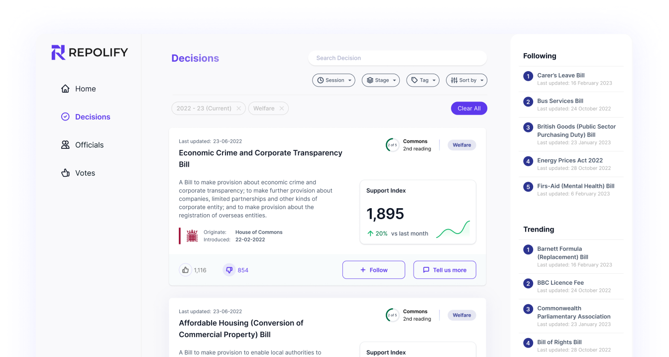 Repolify is the next gen monitoring engine for legislative, regulatory, and policy work